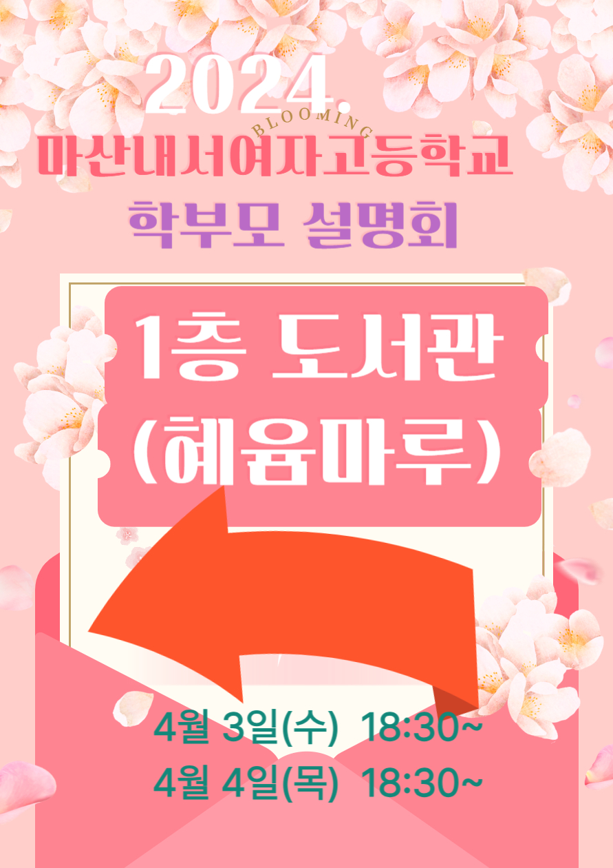 일시: 2024.4.3.(수) 18:30~ 장소: 본교 1층 도서관(혜윰마루) : 3학년 학부모 대상